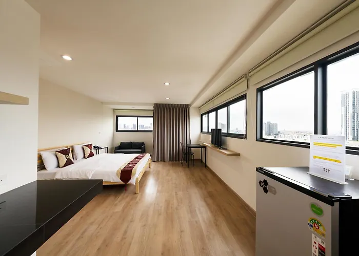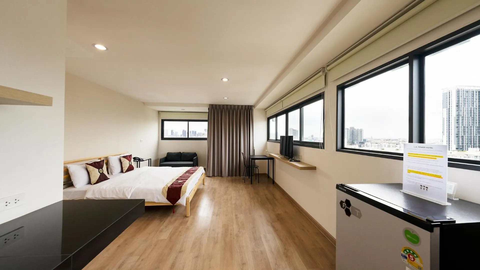 Das 2-Sterne-L.A. Tower Hotel Bangkok liegt im Stadtteil Ratchadaphisek, das für seine historischen Sehenswürdigkeiten wie den Phyathai Palast bekannt ist (knapp 4 Kilometer von der Unterkunft entfrent), und bietet eine Wäscherei und ein Einkaufszentrum. Das Hotel bietet den Gästen auch WLAN in den öffentlichen Bereichen an.